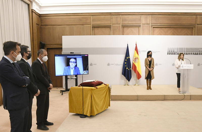Fidel Vázquez ha tomado posesión del cargo de director general de Sepes, en presencia de la ministra de Transportes, Movilidad y Agenda Urbana, Raquel Sánchez, y la secretaria de Estado de Transportes, Movilidad y Agenda Urbana, Isabel Pardo de Vera.