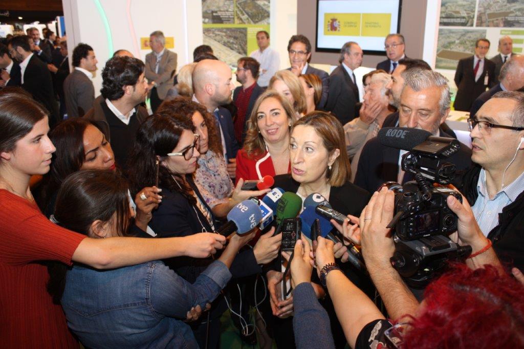 La ministra de Fomento inaugura el XVIII Salón Inmobiliario de Madrid desde el stand de SEPES.