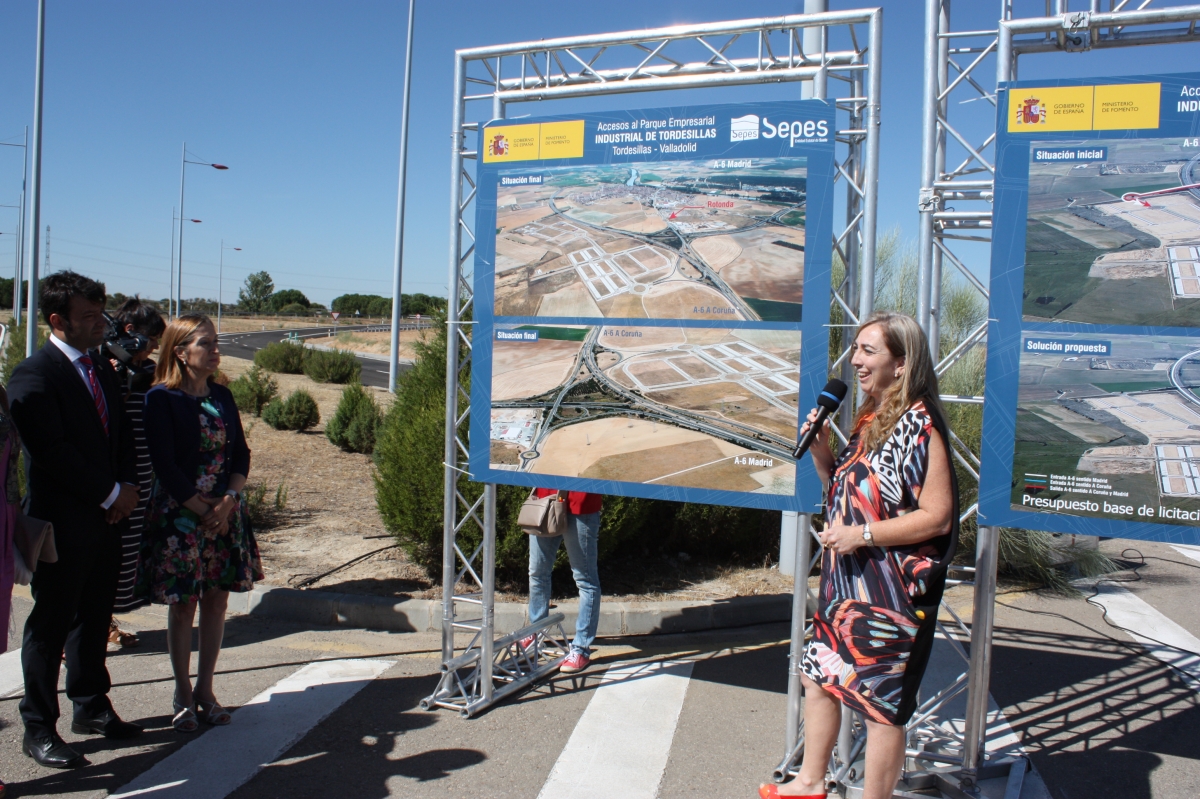 La ministra de Fomento en funciones, Ana Pastor, ha asistido hoy, junto a la directora general de SEPES, Lucia Molares, y al alcalde de Tordesillas, José Antonio González, a la puesta en servicio de la nueva conexión viaria del Sector I del “Parque Logístico Industrial de Tordesillas” con la A-6.