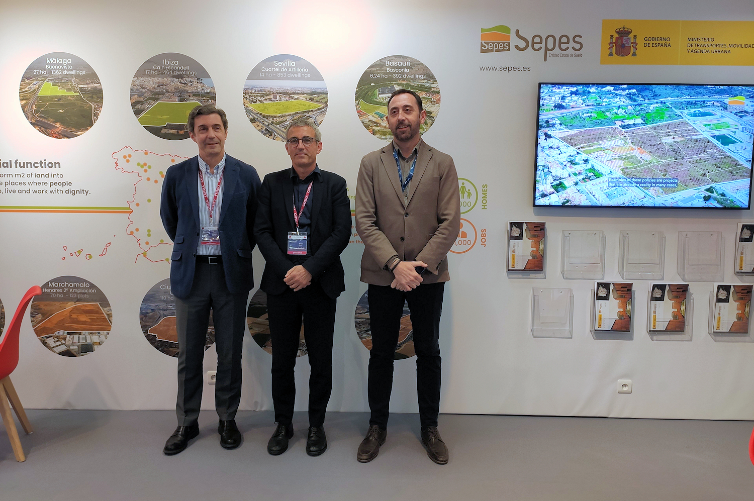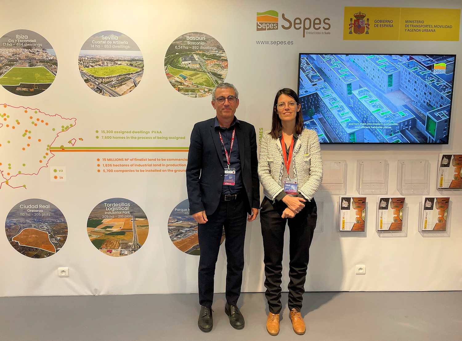 A través de su stand propio, la celebración de numerosos encuentros institucionales y técnicos, y la participación en diferentes foros de debate, SEPES ha mostrado su nueva hoja de ruta como instrumento de las políticas del Gobierno de España en materia de vivienda asequible, con cuidados proyectos que incluyen la regeneración de suelos públicos en desuso, con el objetivo de crear una nueva ciudad donde la vivienda, los servicios y las actividades económicas confluyan de forma complementaria en un mismo territorio.