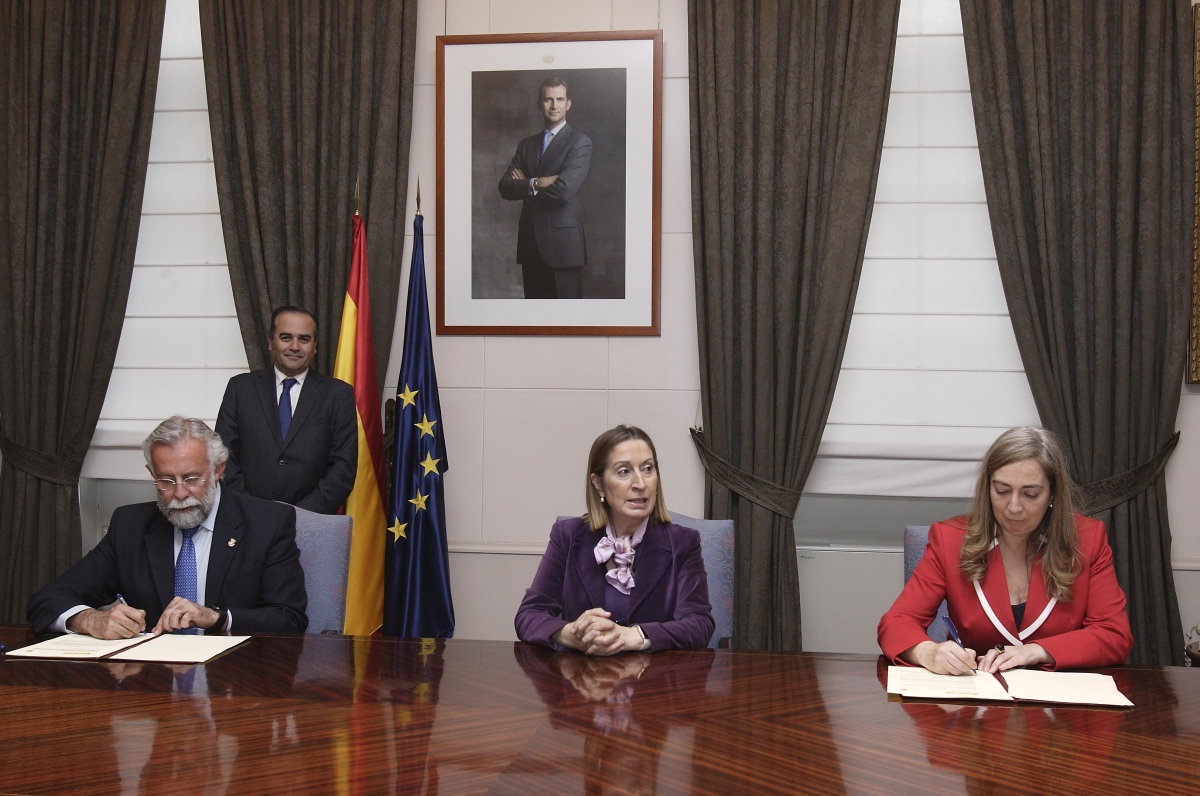El alcalde de Talavera de la Reina y la directora general de SEPES han firmado, en presencia de la ministra de Fomento, Ana Pastor, una Adenda al Convenio de Colaboración firmado el 20 de febrero de 2004, que permitirá iniciar las obras de una primera etapa de la 2ª fase de la Actuación Industrial “Torrehierro”.